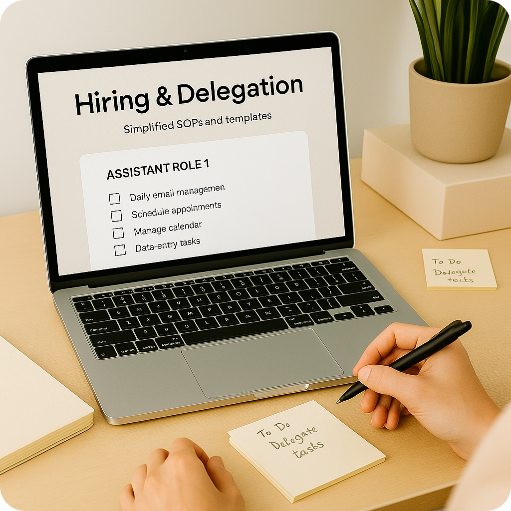 SOPs and templates that make it easy to bring on your first assistant — the right way.